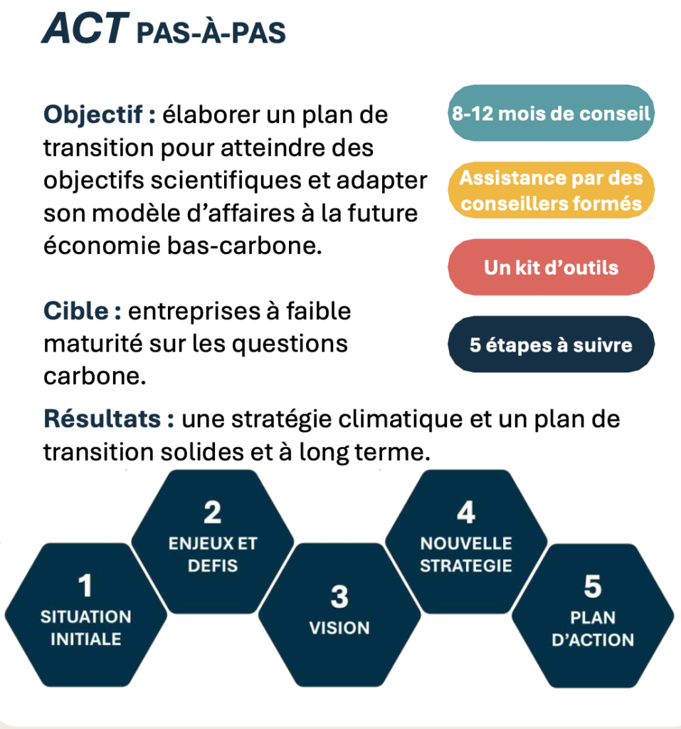 Alors ACT Pas-à-Pas est la parfaite méthodologie pour votre entreprise. Reconnue à l’international, le SBTI et toutes les institutions clés dans la transition bas-carbone, nos experts vous guident en s’adaptant aux enjeux de votre secteur.
